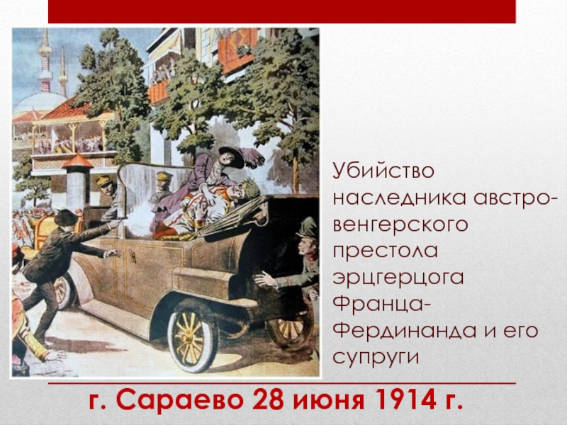 Убийство наследника австро-венгерского престола эрцгерцога Франца-Фердинанда и его супругиг. Сараево 28 июня 1914 г.