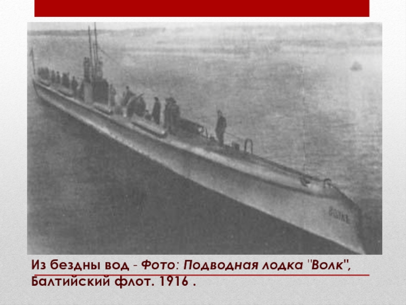 Слайд 18Из бездны вод - Фото: Подводная лодка "Волк", Балтийский флот. 1916 .