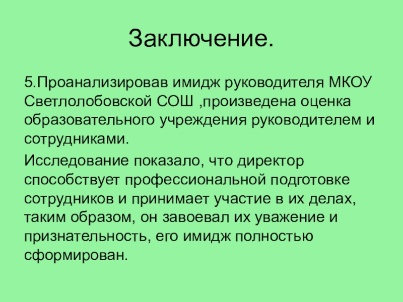 5.Проанализировав имидж руководителя МКОУ Светлолобовской СОШ ,произведена оценка образовательного учреждения руководителем
