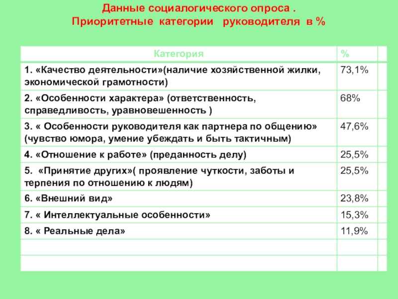 Слайд 13Вывод по социалогическому опросу о профессионально важных качествах руководителя ,оказывающих влияние