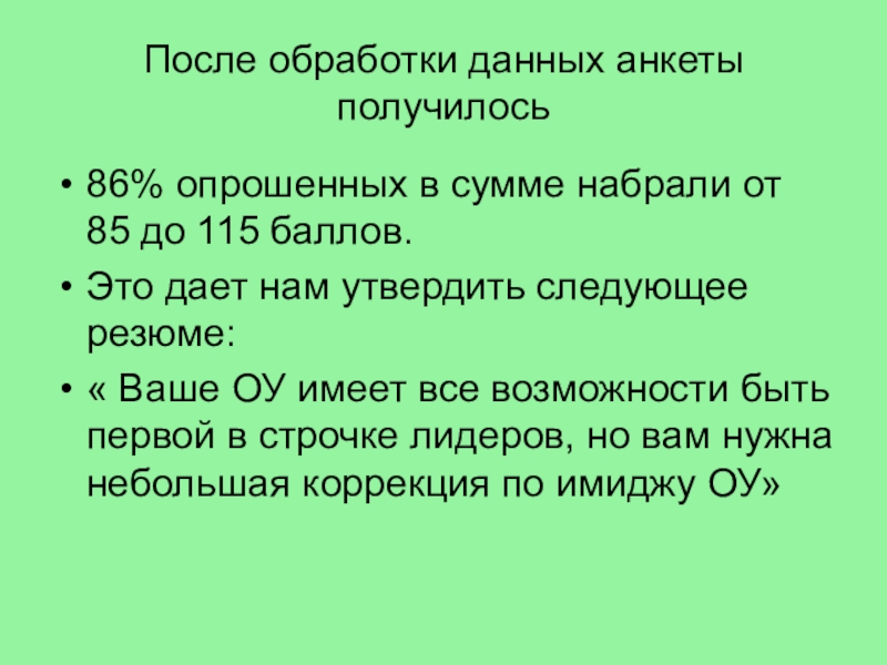 « Ваше ОУ имеет все возможности быть первой в строчке лидеров, но вам нужна небольшая коррекция по имиджу ОУ»