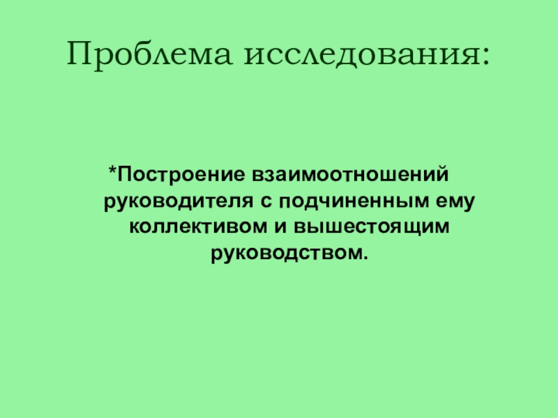 4.Сформулирована основная проблема, встающая перед руководителем.(проблема взаимоотношений с подчиненным ему коллективом и вышестоящим руководством.