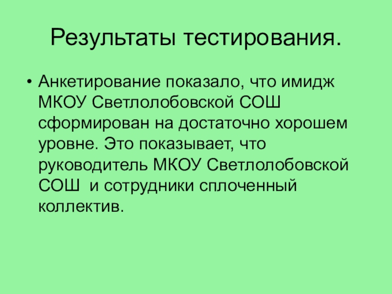 Анкетирование показало, что имидж МКОУ Светлолобовской СОШ сформирован на достаточно