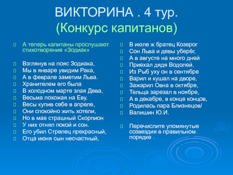 Перечислите упомянутые созвездия в правильном порядке .