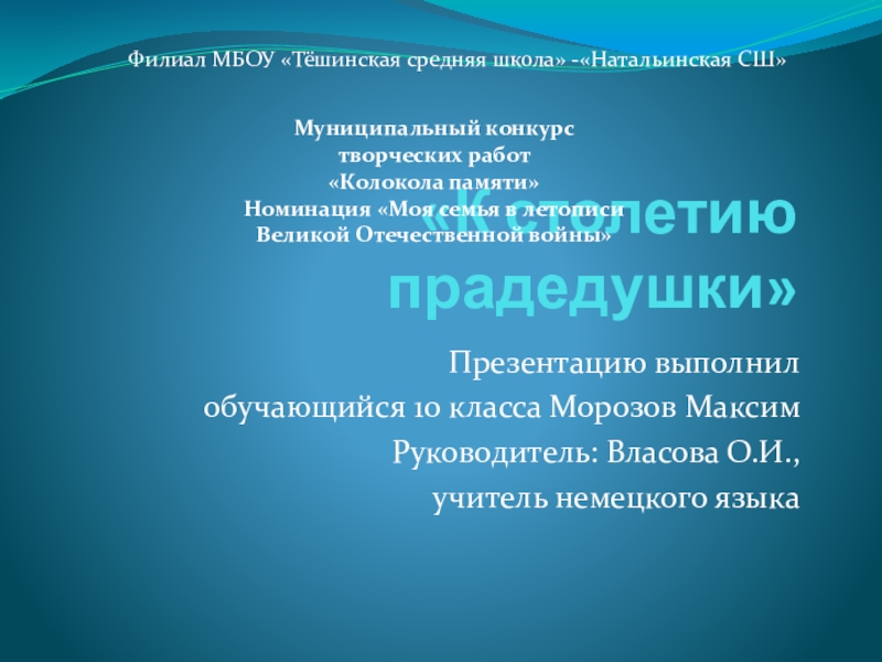 Номинация «Моя семья в летописи Великой Отечественной войны»