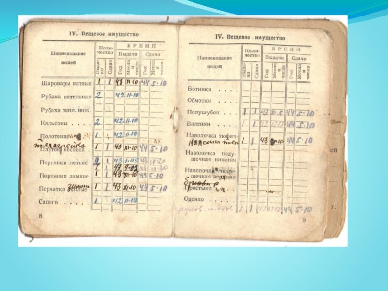 Выданные вещи служили верой и правдой, согревали, лечили…и строго учитывались;