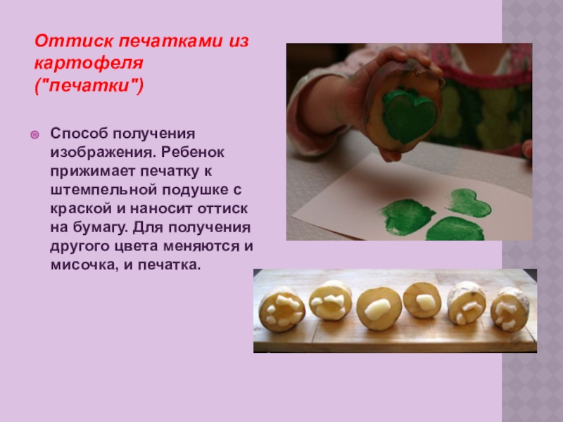 оттиск печатками из картофеля;