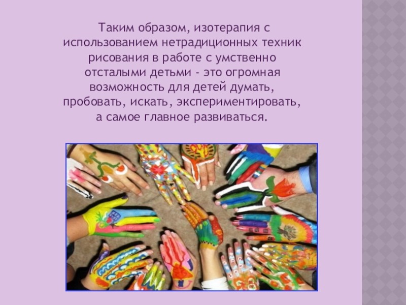 Слайд 17 Таким образом, изотерапия с использованием нетрадиционных техник рисования в работе
