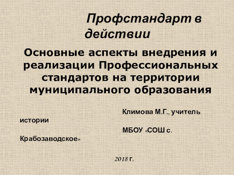 Основные аспекты внедрения и реализации Профессиональных стандартов на территории муниципального образования