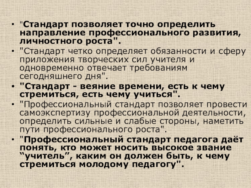 Слайд 20"Стандарт позволяет точно определить направление профессионального развития, личностного роста".