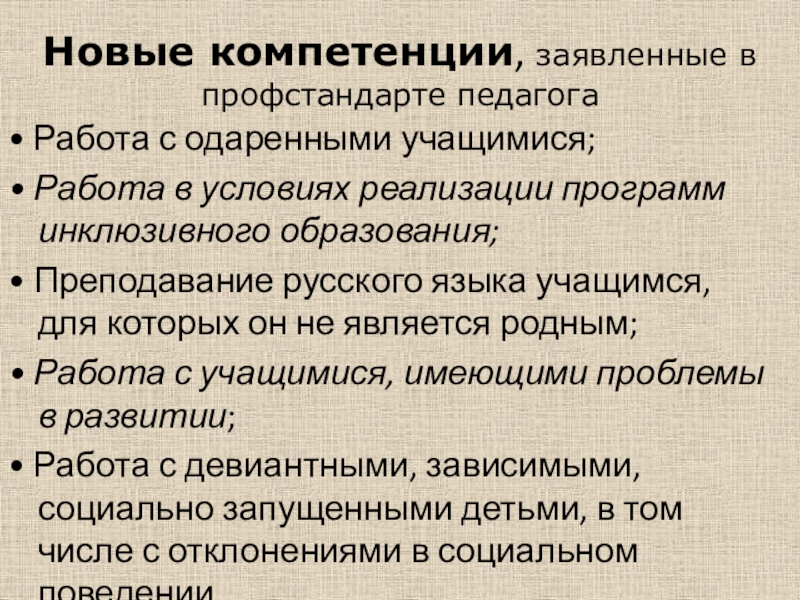 Слайд 19Новые компетенции, заявленные в профстандарте педагога
