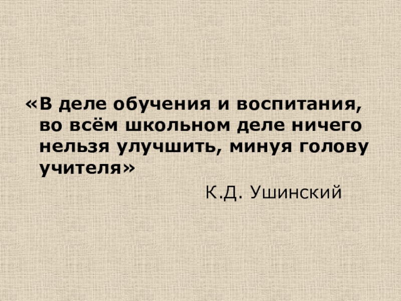 Слайд 5«В деле обучения и воспитания, во всём школьном деле ничего нельзя