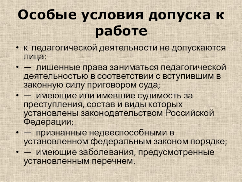 права заниматься педагогической деятельностью в соответствии с вступившим в законную силу приговором суда;