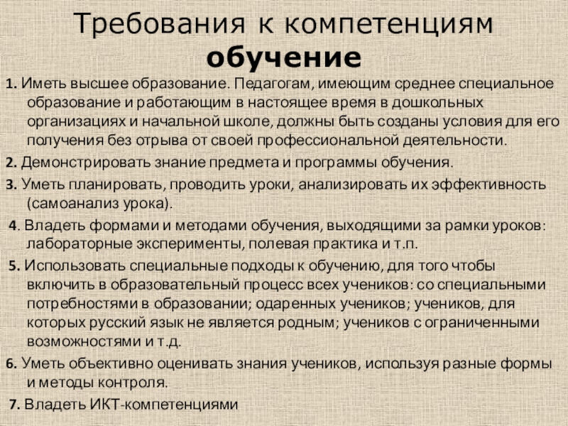 1. Иметь высшее образование. Педагогам, имеющим среднее специальное