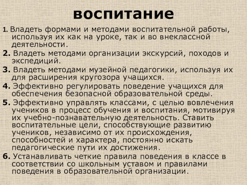 1. Владеть формами и методами воспитательной работы, используя их как на