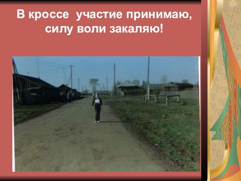 Слайд 8В кроссе участие принимаю, силу воли закаляю!