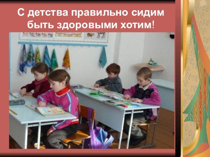 Слайд 2С детства правильно сидим быть здоровыми хотим!