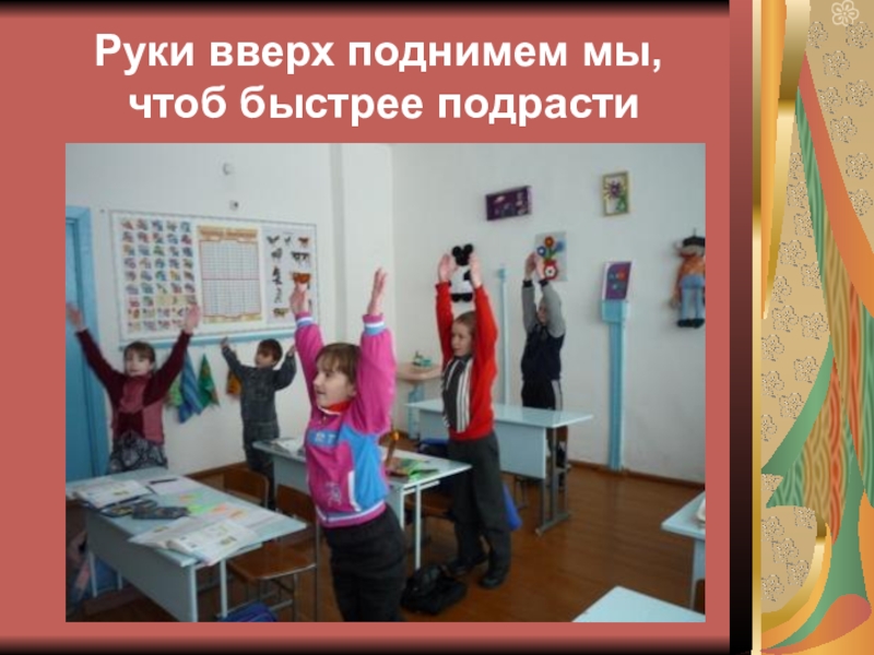 Слайд 4Руки вверх поднимем мы, чтоб быстрее подрасти