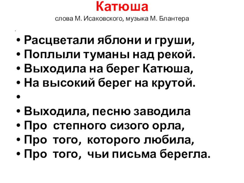 слова М. Исаковского, музыка М. Блантера