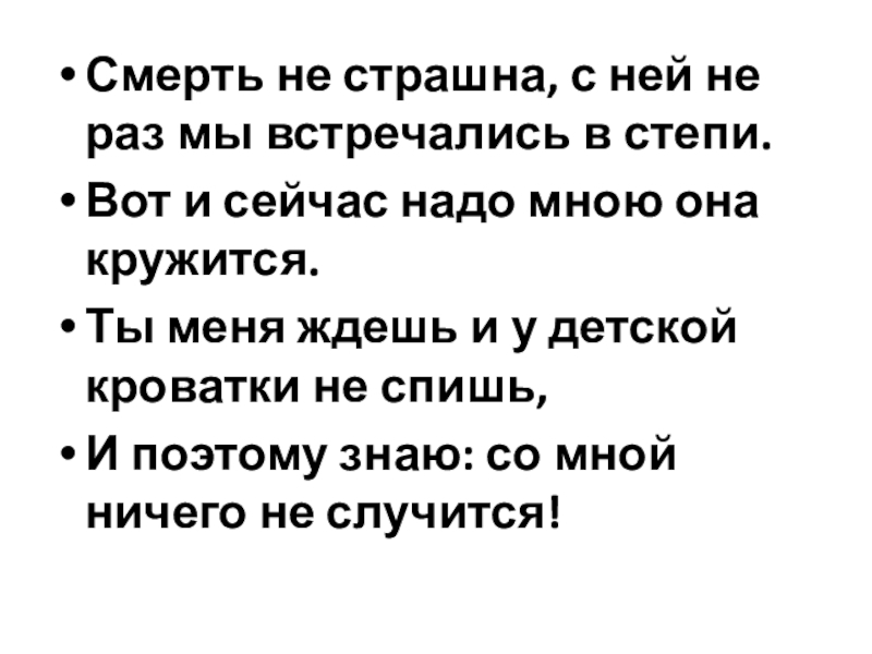 Слайд 82Смерть не страшна, с ней не раз мы встречались в степи.