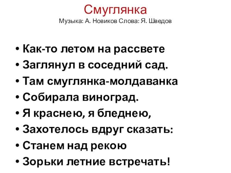 Музыка: А. Новиков Слова: Я. Шведов