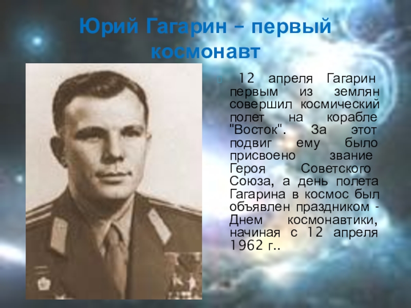 Юрий Гагарин – первый космонавт