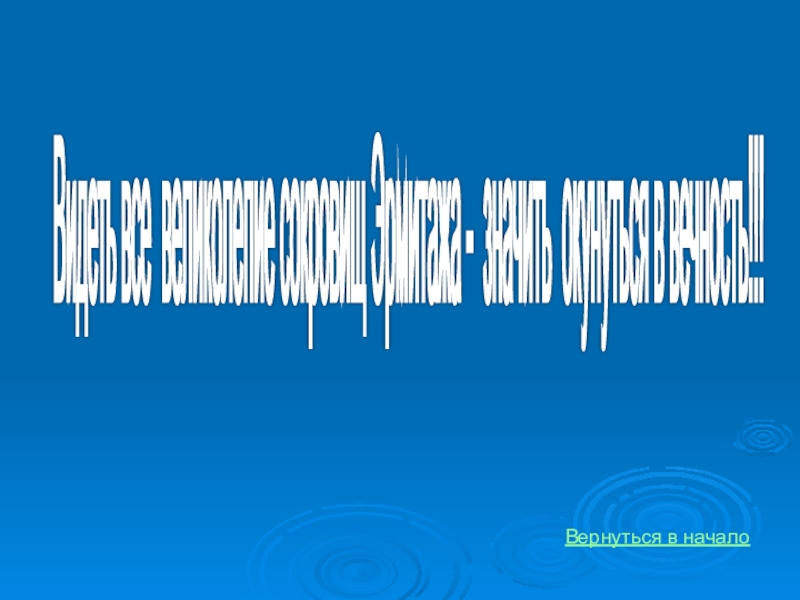 Видеть все великолепие сокровищ Эрмитажа - значить окунуться в вечность!!! Вернуться в начало