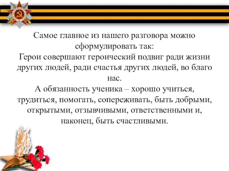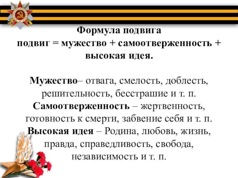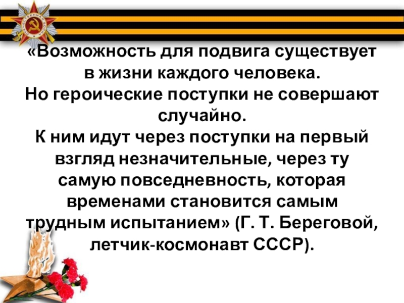 Слайд 19«Возможность для подвига существует в жизни каждого человека.