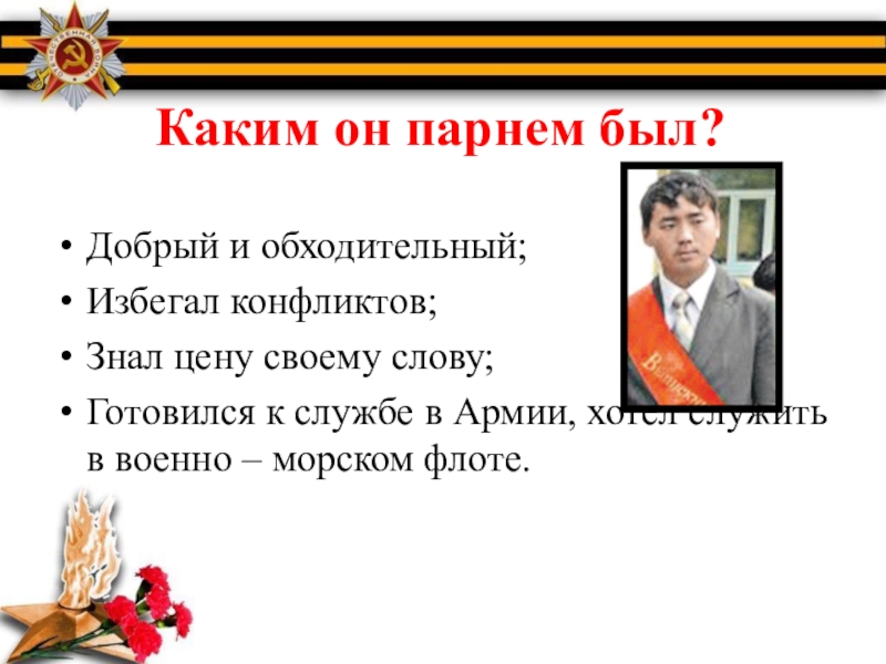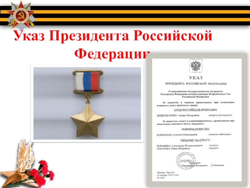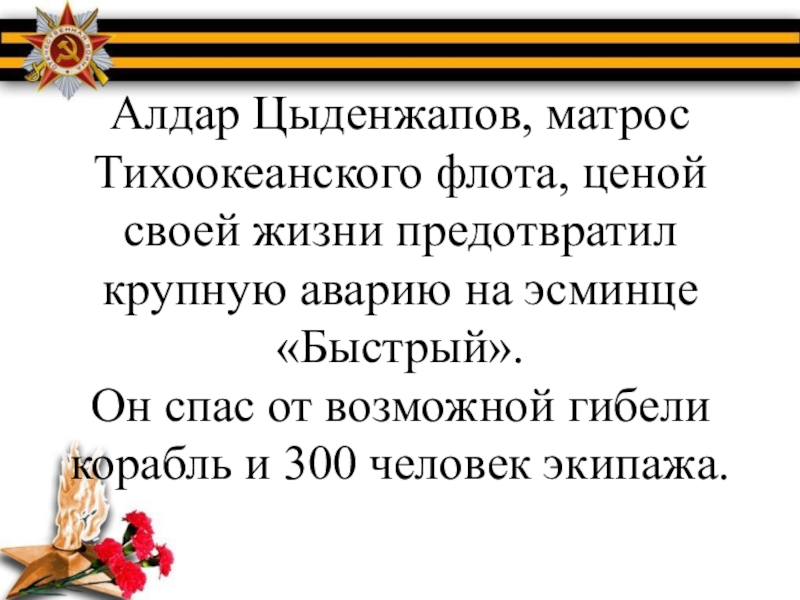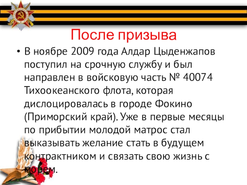 Слайд 6Алдар Цыденжапов — первый со времен Великой Отечественной войны моряк-надводник Тихоокеанского