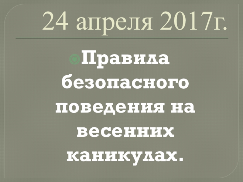 24 апреля 2017г.Правила безопасного поведения на весенних каникулах.