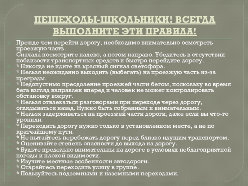 Слайд 9ПЕШЕХОДЫ-ШКОЛЬНИКИ! ВСЕГДА ВЫПОЛНИТЕ ЭТИ ПРАВИЛА!