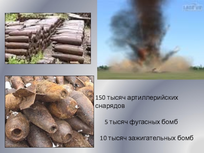 150 тысяч артиллерийских снарядов   5 тысяч фугасных бомб  10 тысяч зажигательных бомб
