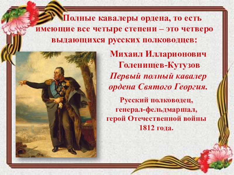 Слайд 9 Полные кавалеры ордена, то есть имеющие все