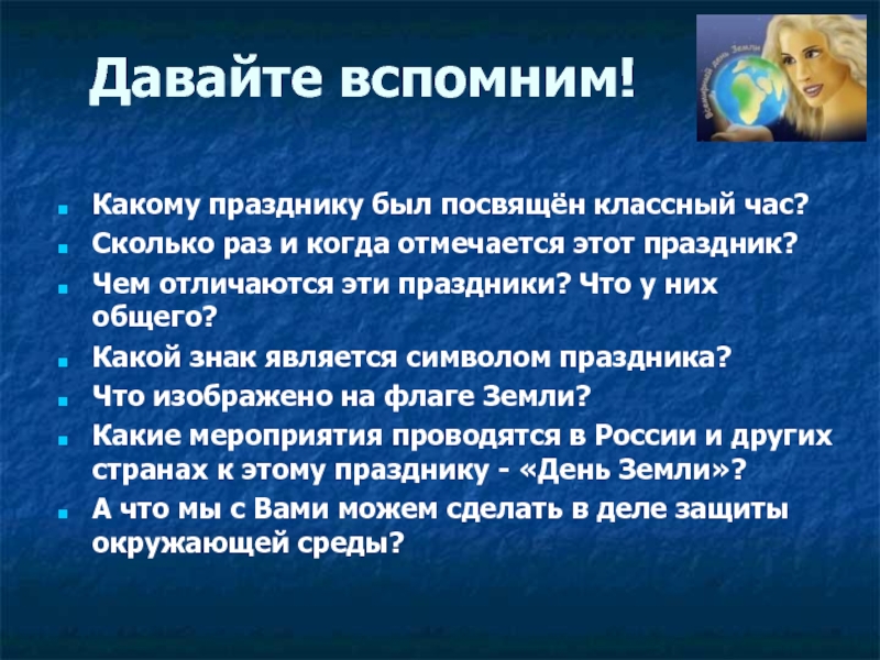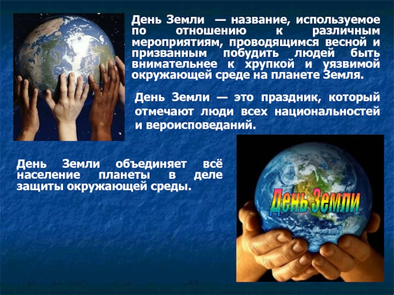 День Земли — это праздник, который отмечают люди всех национальностей и вероисповеданий.