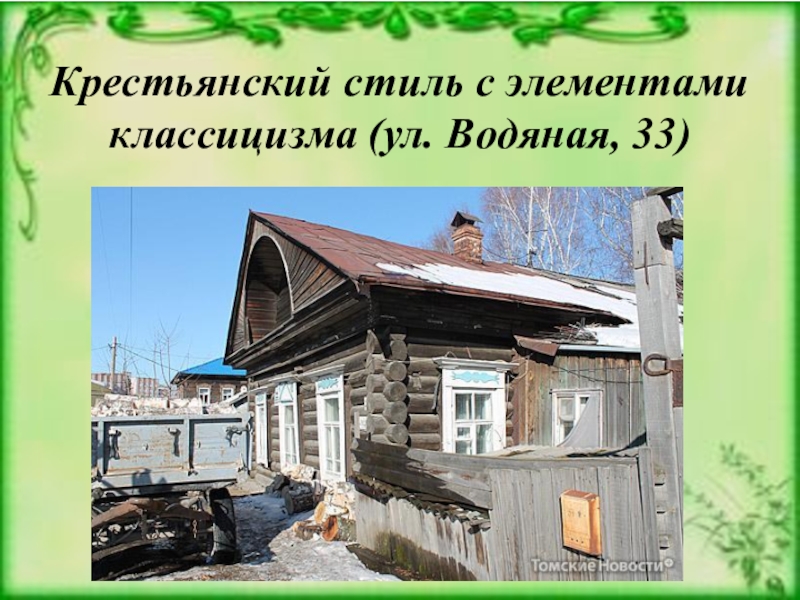 Слайд 12Крестьянский стиль с элементами классицизма (ул. Водяная, 33)