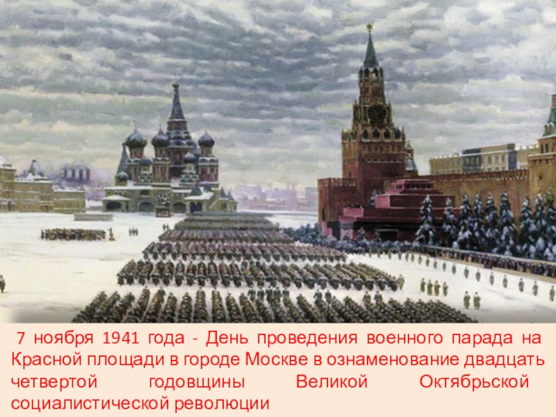 Слайд 137 ноября 1941 года - День проведения военного парада на Красной