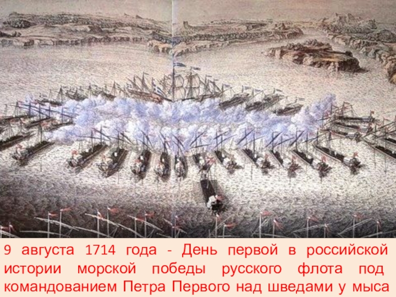Слайд 79 августа 1714 года - День первой в российской истории морской