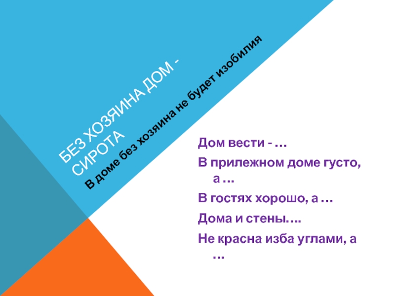 В доме без хозяина не будет изобилия