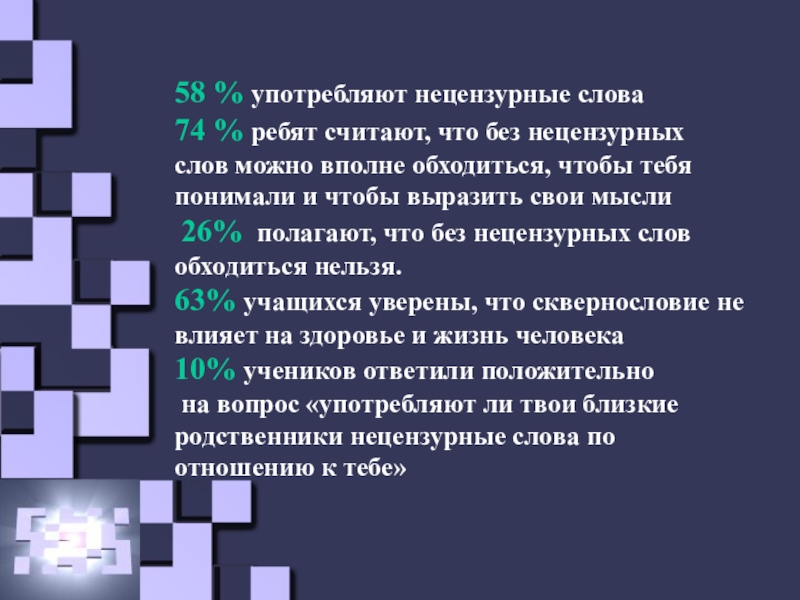 63% учащихся уверены, что сквернословие не влияет на здоровье и жизнь человека