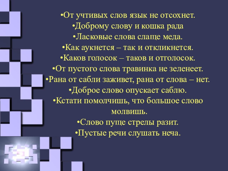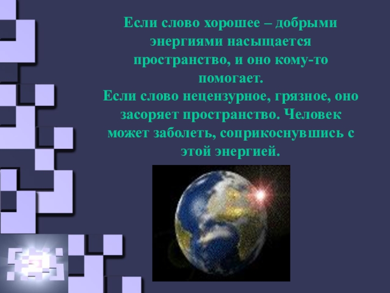 Слайд 11Если слово хорошее – добрыми энергиями насыщается пространство, и оно кому-то