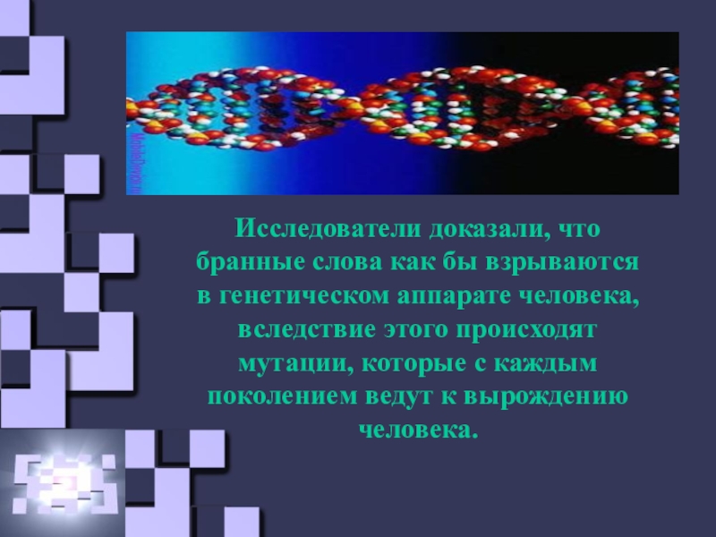 Слайд 19Исследователи доказали, что бранные слова как бы взрываются в генетическом аппарате