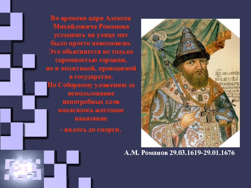 Слайд 17Во времена царя Алексея Михайловича Романова
