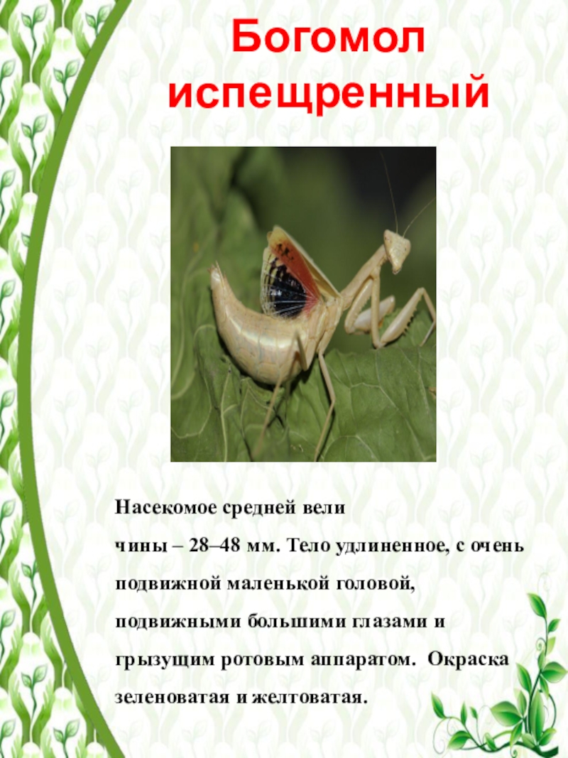 подвижной маленькой головой, подвижными большими глазами и грызущим ротовым аппаратом. Окраска зеленоватая и желтоватая.