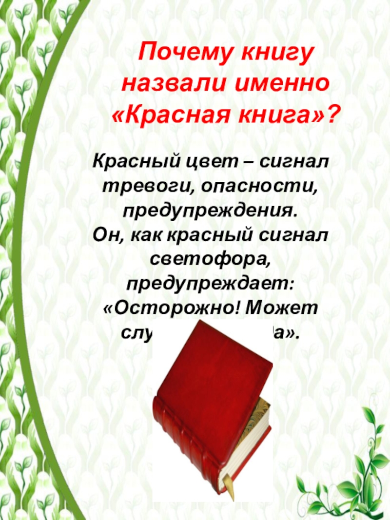 Слайд 3Почему книгу назвали именно «Красная книга»?