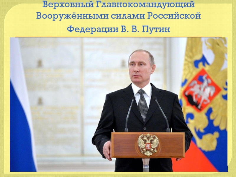 Слайд 5Верховный Главнокомандующий Вооружёнными силами Российской Федерации В. В. Путин