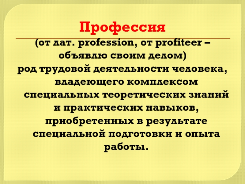 трудовой деятельности человека, владеющего комплексом специальных теоретических знаний и практических навыков, приобретенных в результате специальной подготовки и опыта работы.