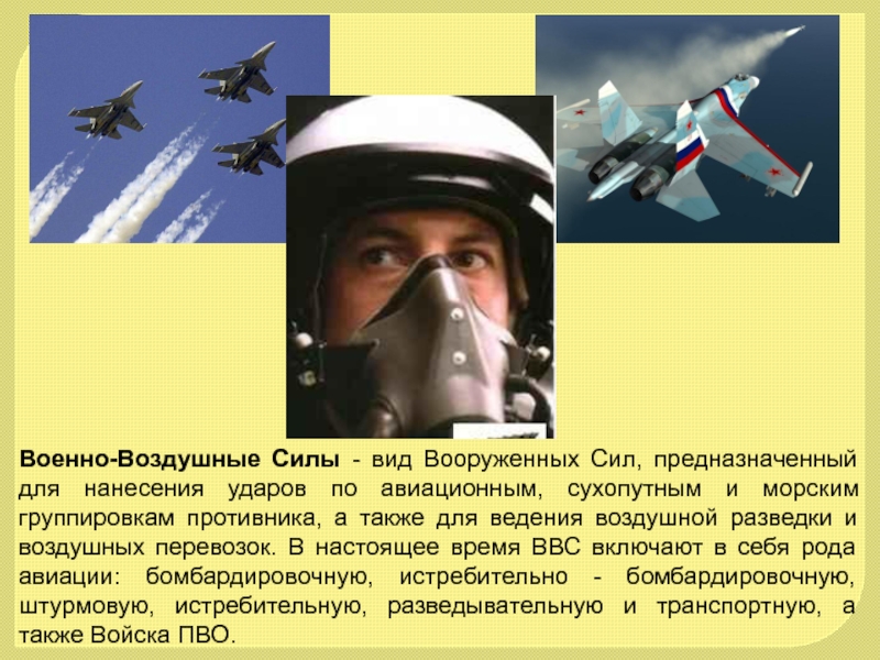 Слайд 12Военно-Воздушные Силы - вид Вооруженных Сил, предназначенный для нанесения ударов по