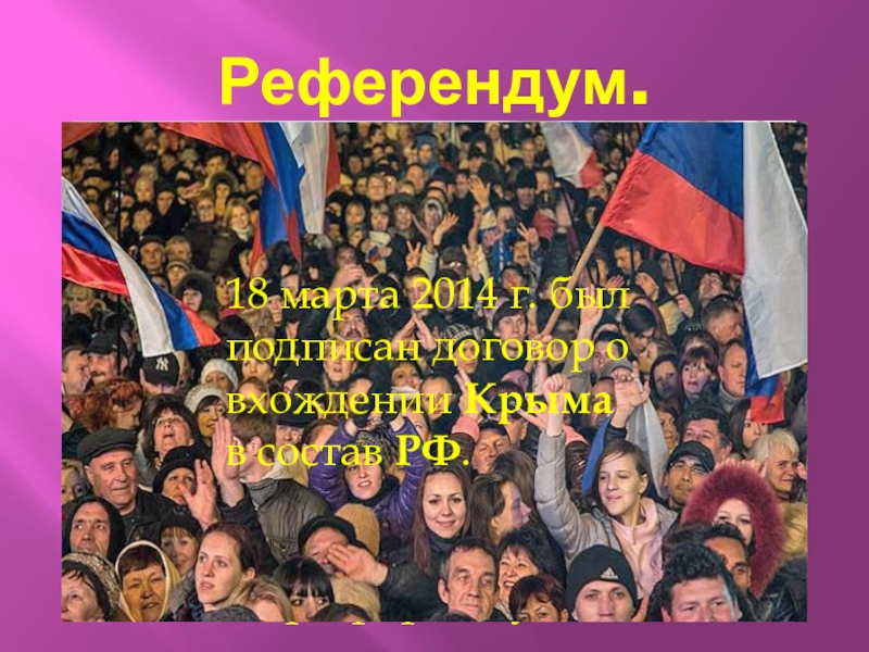 18 марта 2014 г. был подписан договор о вхождении Крыма в состав РФ.