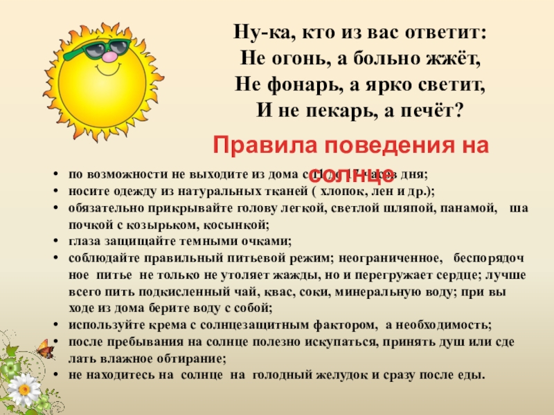 Правила поведения на солнце