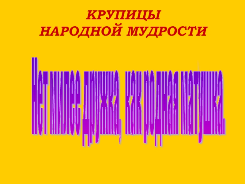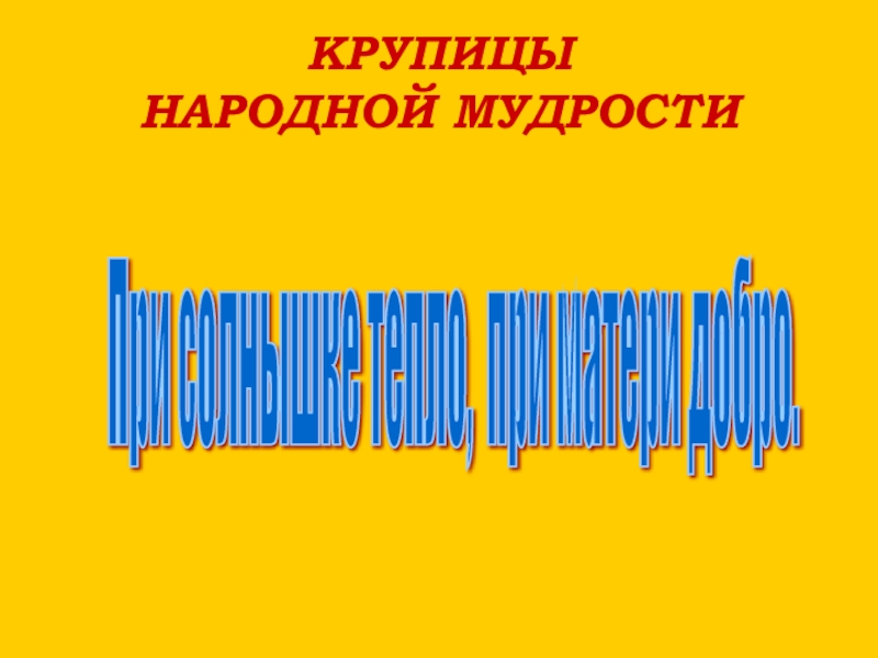КРУПИЦЫ  НАРОДНОЙ МУДРОСТИПри солнышке тепло, при матери добро.